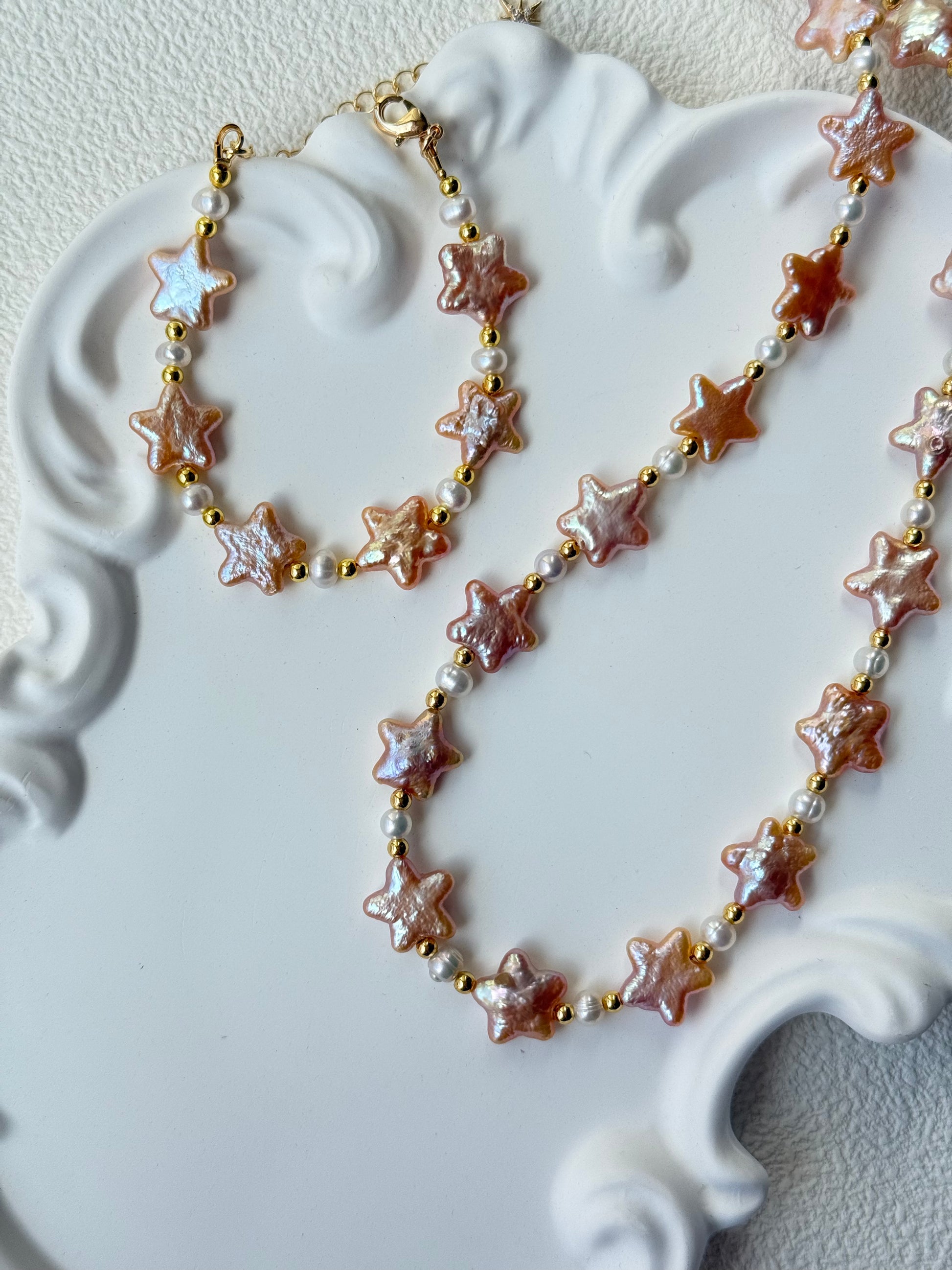 Material: Natural baroque freshwater pearls in star shape, 18K gold-plated brass beads, and high-quality clasp.