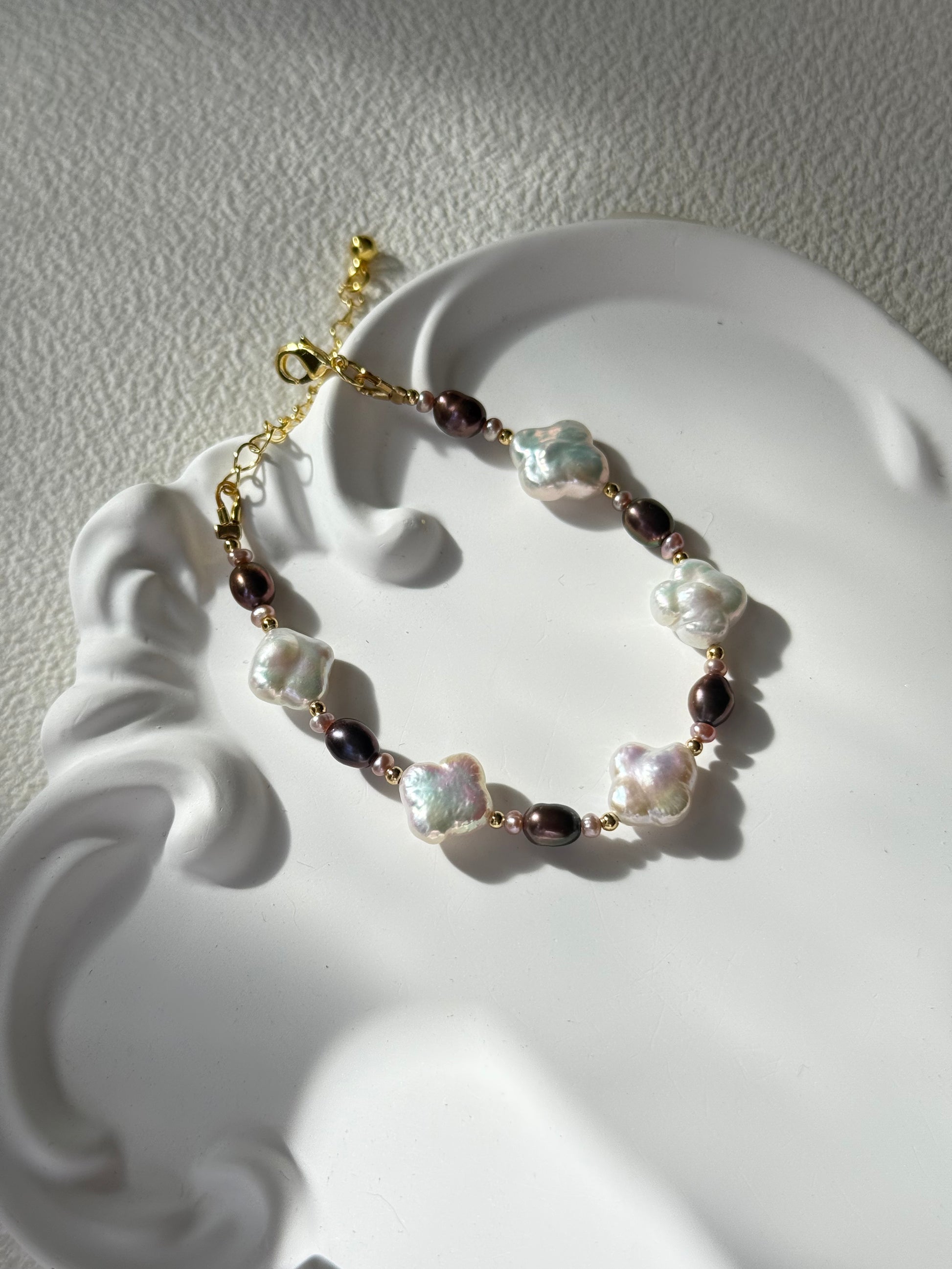 Main Material: Natural freshwater pearls (clover baroque & oval purple pearls)