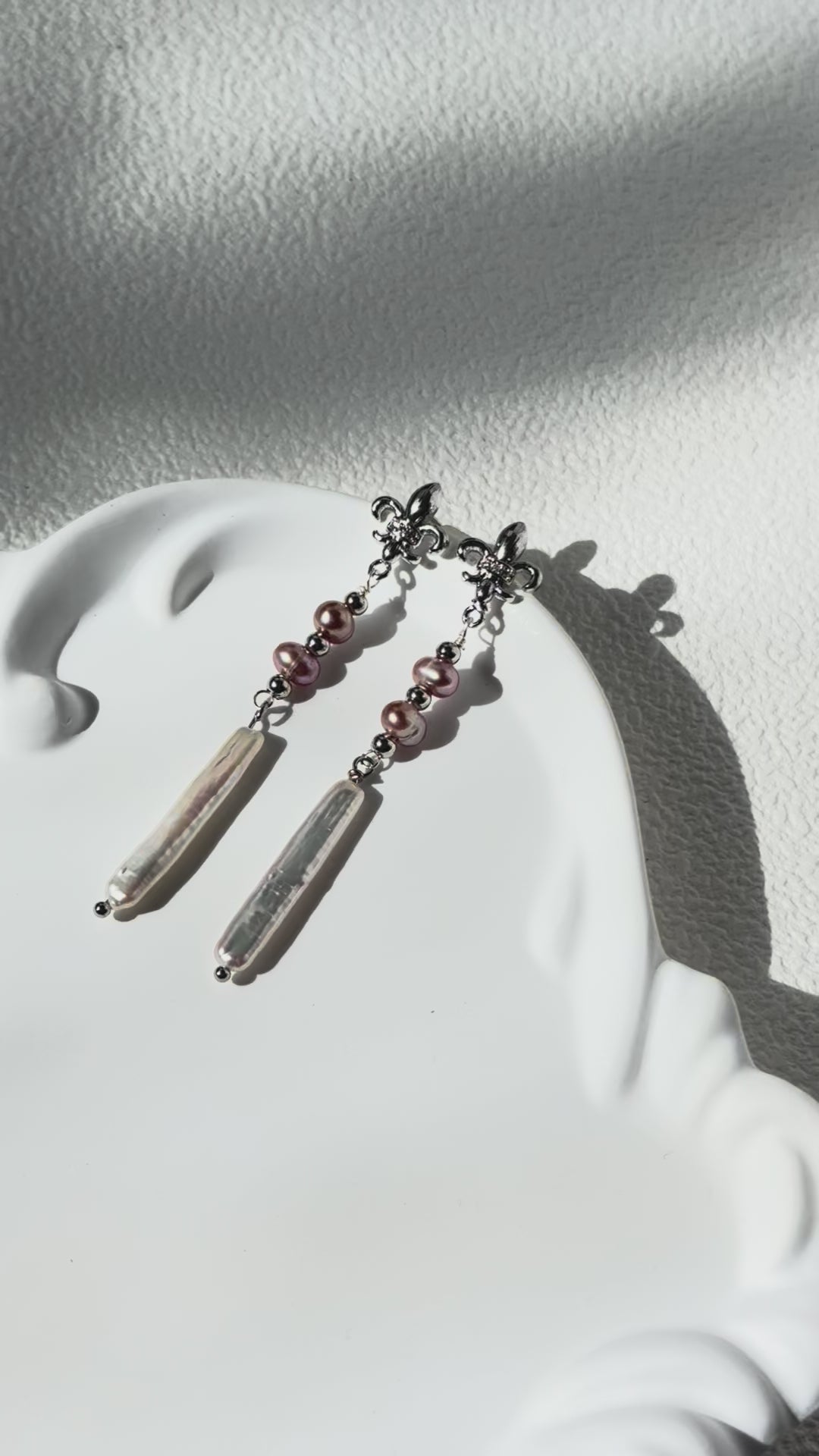 Pearl Size: Lavender-pink pearls approx. 4–5mm; stick pearls approx. 20–25mm (each pearl’s shape may vary naturally)