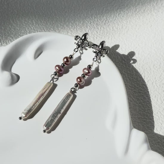 Color: Natural white stick pearls with soft lavender-pink round pearls