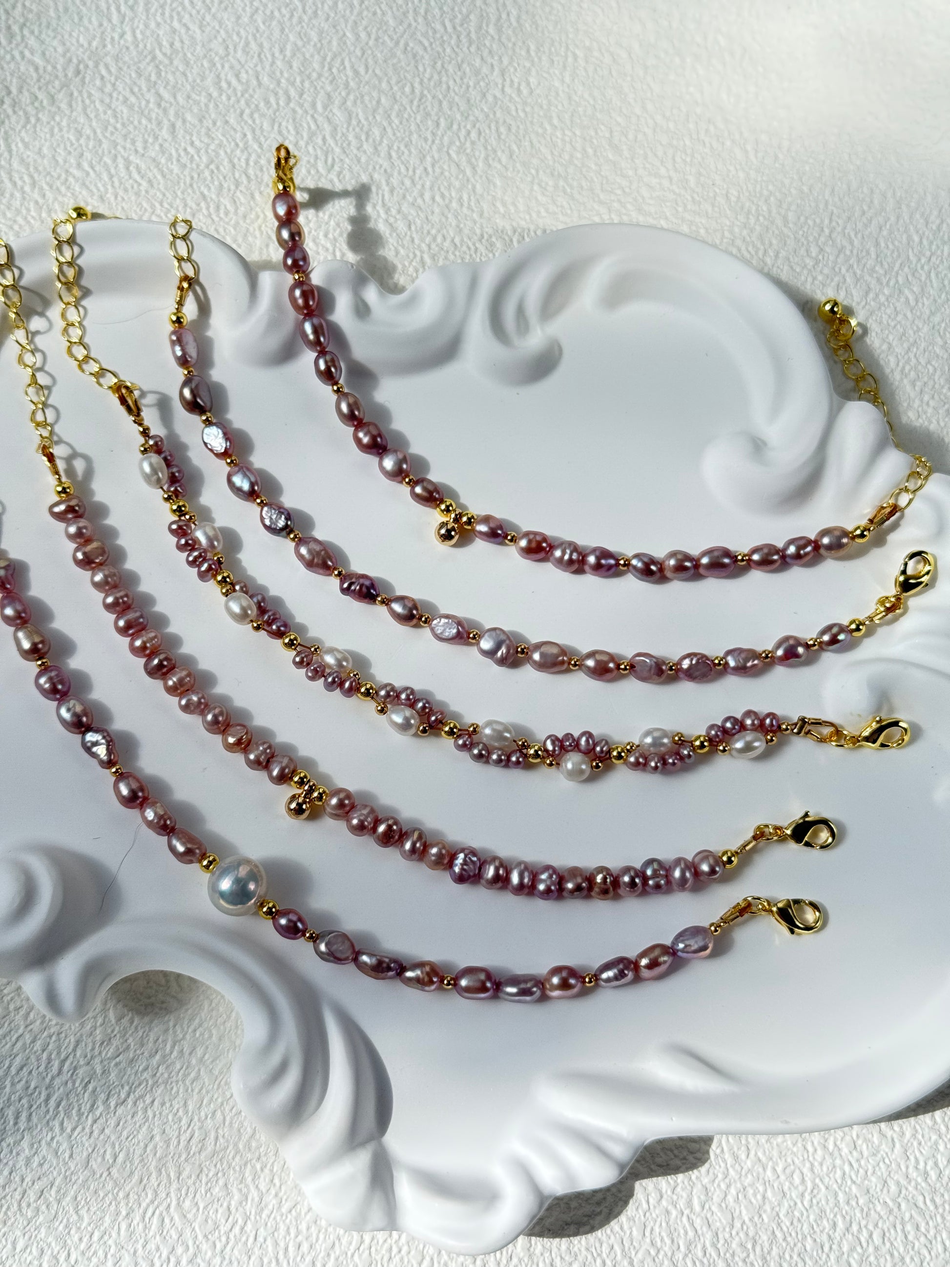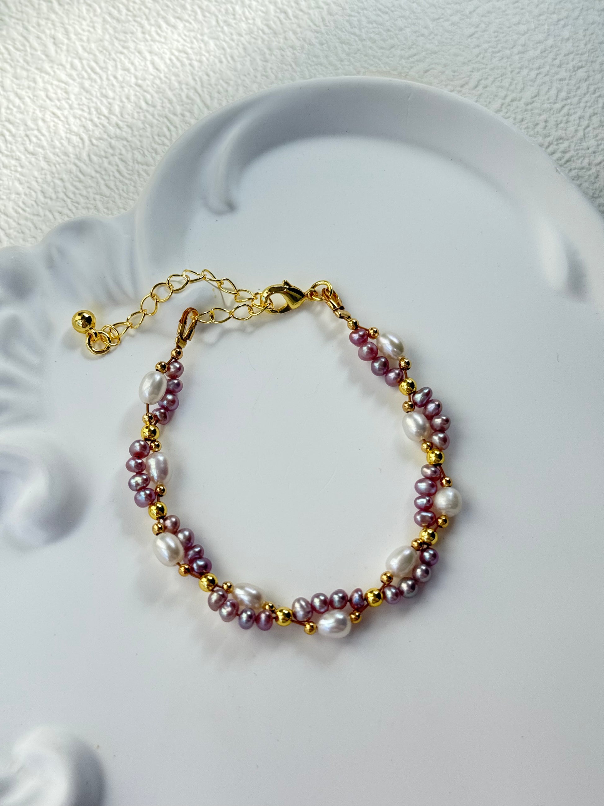 Material: Natural freshwater pearls (lavender & white), 14K gold-plated brass