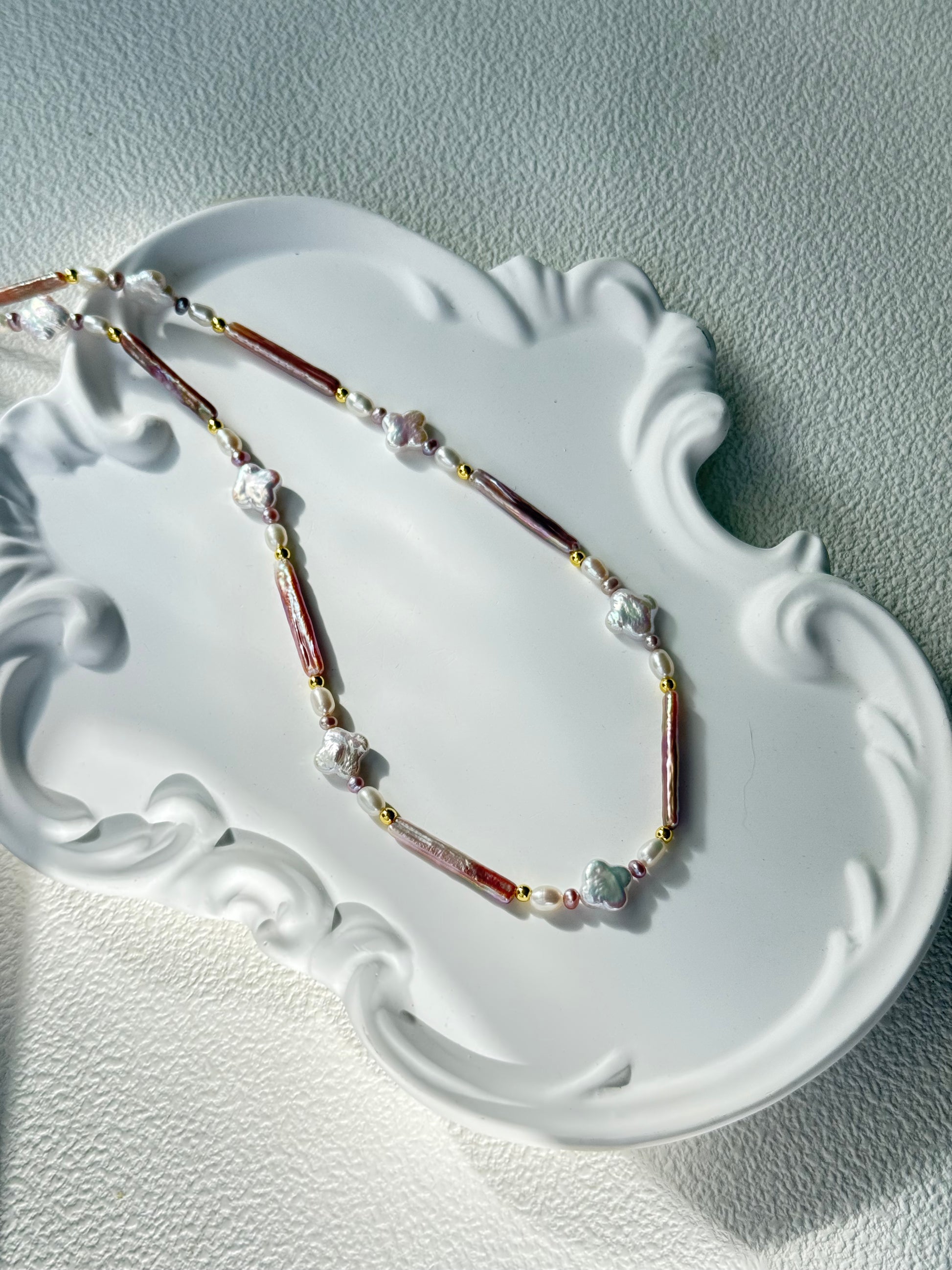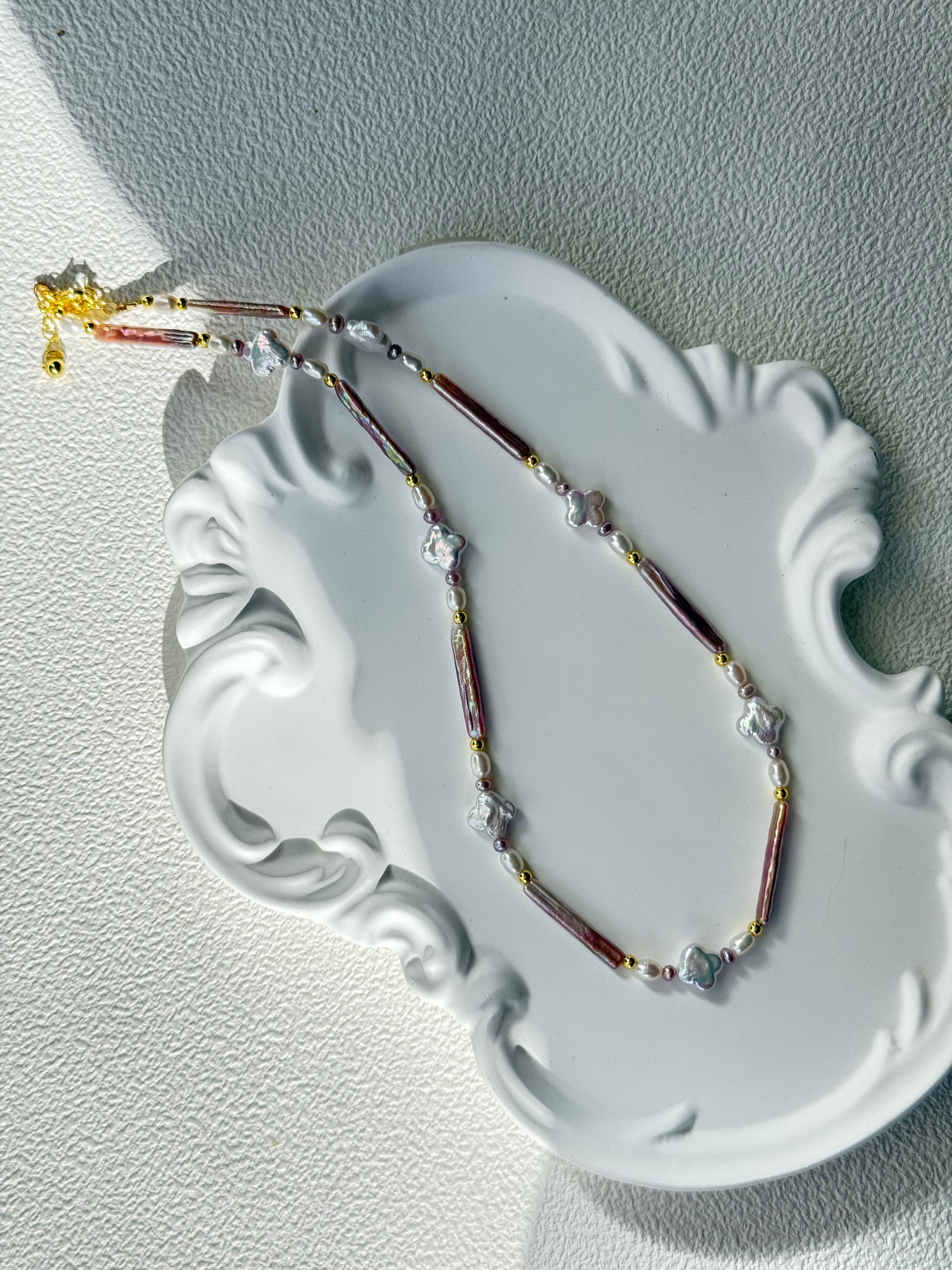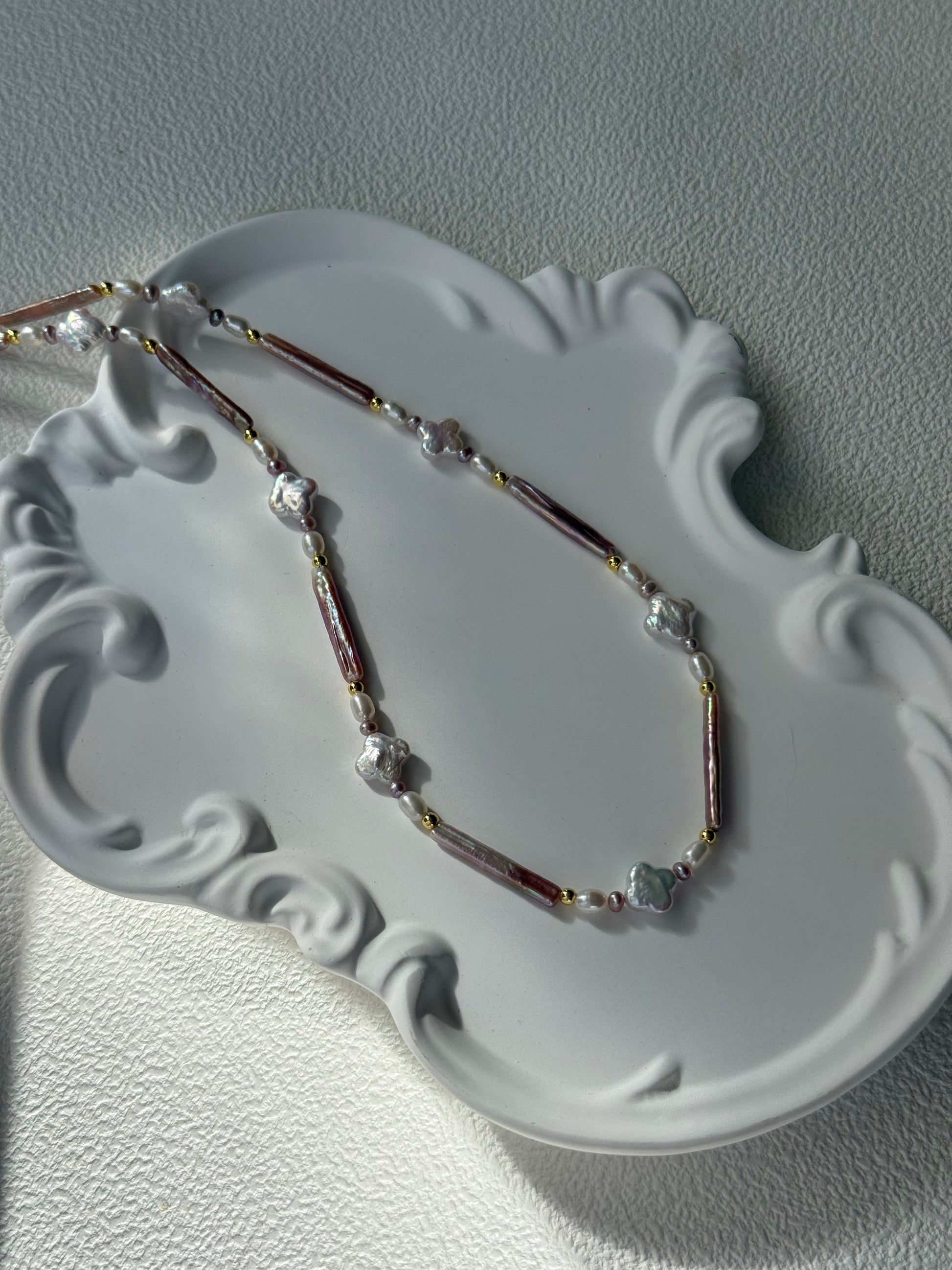 Purple Baroque & Clover Freshwater Pearl Necklace