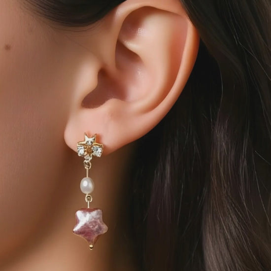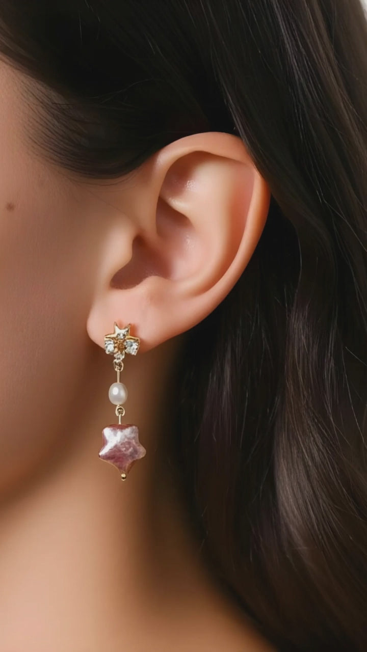 Bring a dreamy sparkle to your day with these Sweet Starry Purple Pearl Drop Earrings. Featuring natural star-shaped freshwater pearls in a soft iridescent purple tone, each piece is accented with a dainty gold star and shimmering cubic zirconia for an extra touch of magic. Perfect for adding a sweet and romantic vibe to your outfit, whether it’s for a date, a special occasion, or simply to brighten your everyday look.